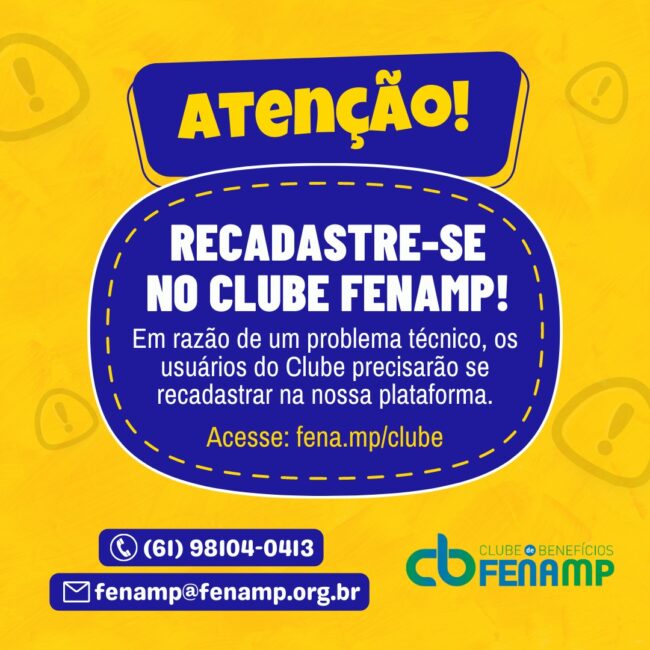 Tivemos um problema técnico na plataforma do Clube Fenamp e os cadastros existentes foram excluídos. O problema já foi resolvido e os usuários já podem proceder o recadastro no Clube. Pedimos desculpas pelo transtorno e contamos com a compreensão de todos. 🙏 ➡️ Como realizar o cadastro: ✅ Acesse: https://fena.mp/clube ✅ Clique em “Ativar Conta”.…