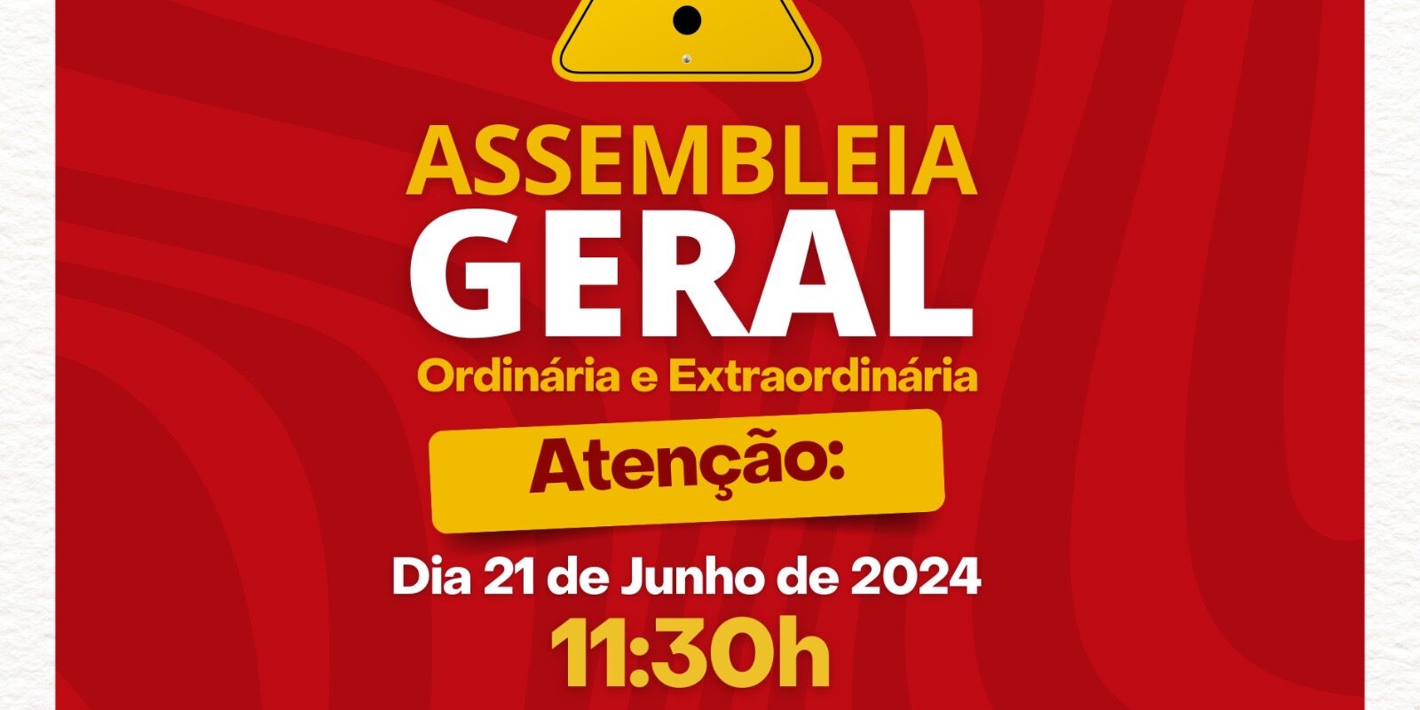 📢 Convocamos todos os servidores filiados ao nosso sindicato para a Assembleia Geral Ordinária e Extraordinária que será realizada em nossa sede no dia 21 de Junho de 2024 às 11:30h.