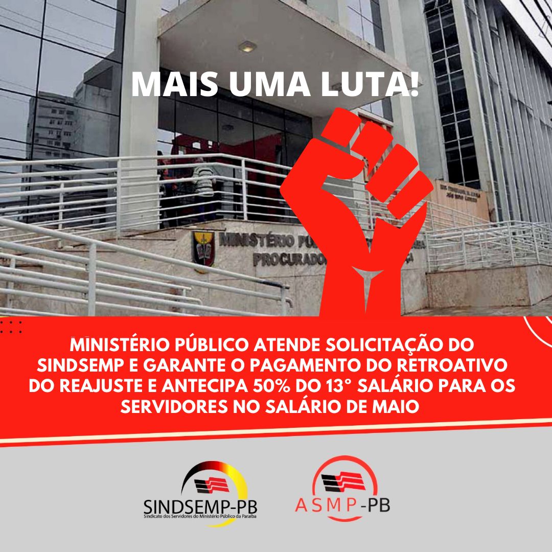 SINDSEMP-PB consegue antecipação do pagamento 50% do 13º salário dos servidores do MPPB para maio11 de maio de 2022