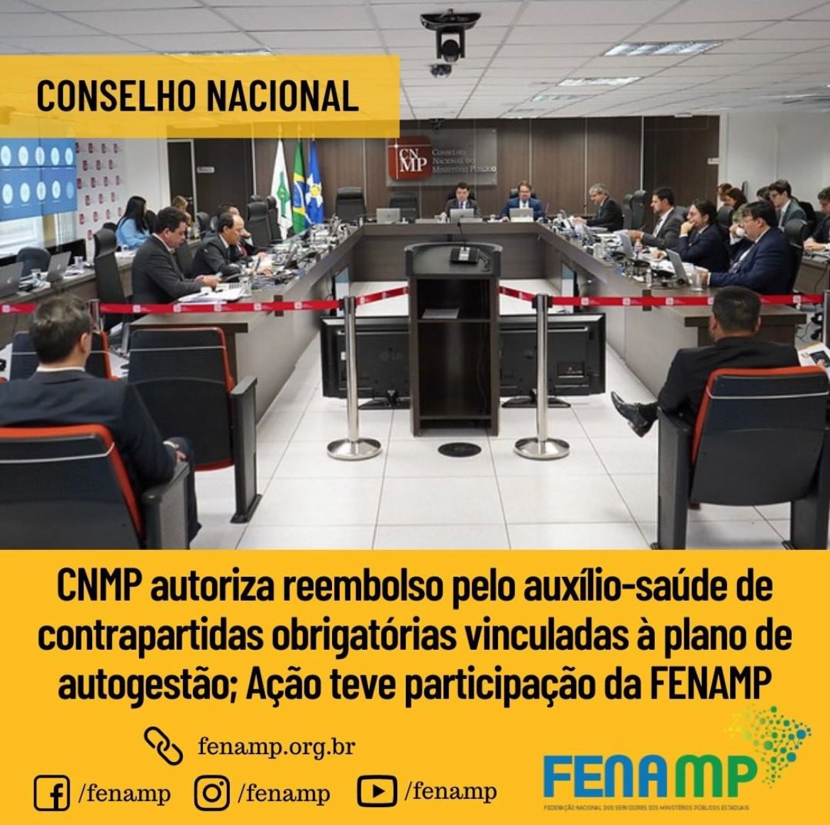 CNMP autoriza reembolso pelo auxílio-saúde de contrapartidas obrigatórias vinculadas à plano de autogestão; Ação teve participação da FENAMP30 de maio de 2022