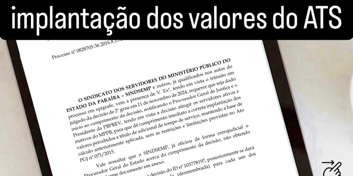O SINDSEMP ingressou nesta quarta 16/01 com petição solicitando a implantação imediata da atualização dos valores dos ATS dos Servidores ativos e inativos do Ministério Público.