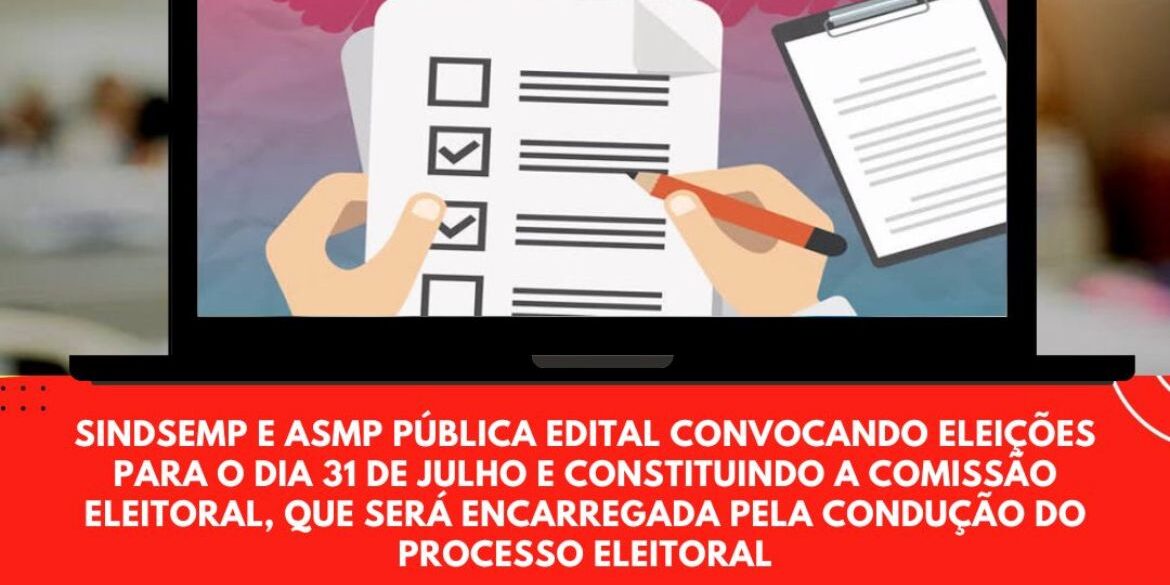 O Presidente do SINDSEMP e ASMP – PB, cumprindo disposições estatutárias publicou no dia 29/06 o Edital 02/23 convocando eleições para a Diretoria das entidades e constituindo a Comissão Eleitoral, composta pelos Servidores Jacinta de Lourdes Silva Sobreira; Elizabete Leonia Soares de Oliveira; Ana Maria do Nascimento Castro e Walter Régis Gomes, para sob a presidência da primeira, presidir o processo eleitoral.